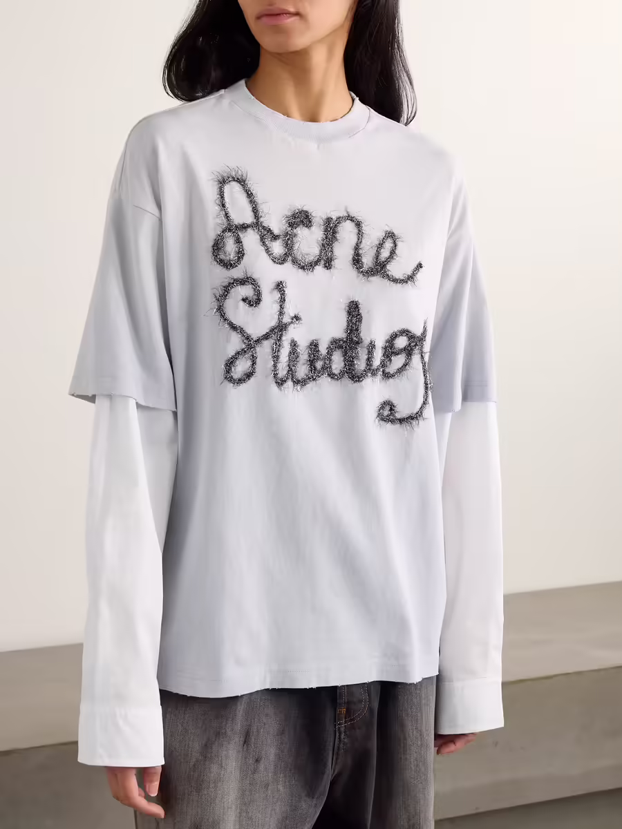 Layered Embroidered Cotton-Jersey and Poplin T-Shirt