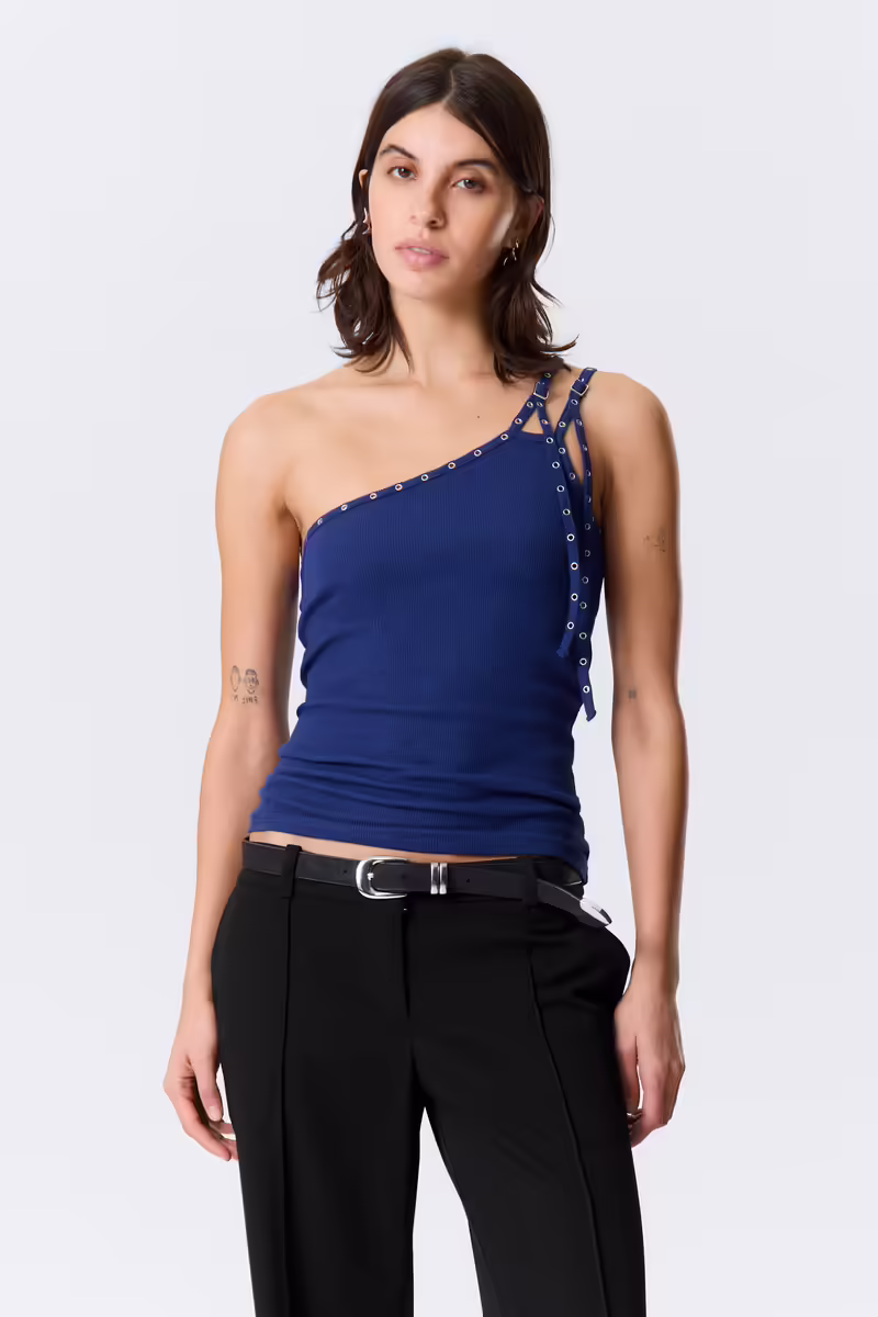 Eyelet Detail Asymmetric Tank Top