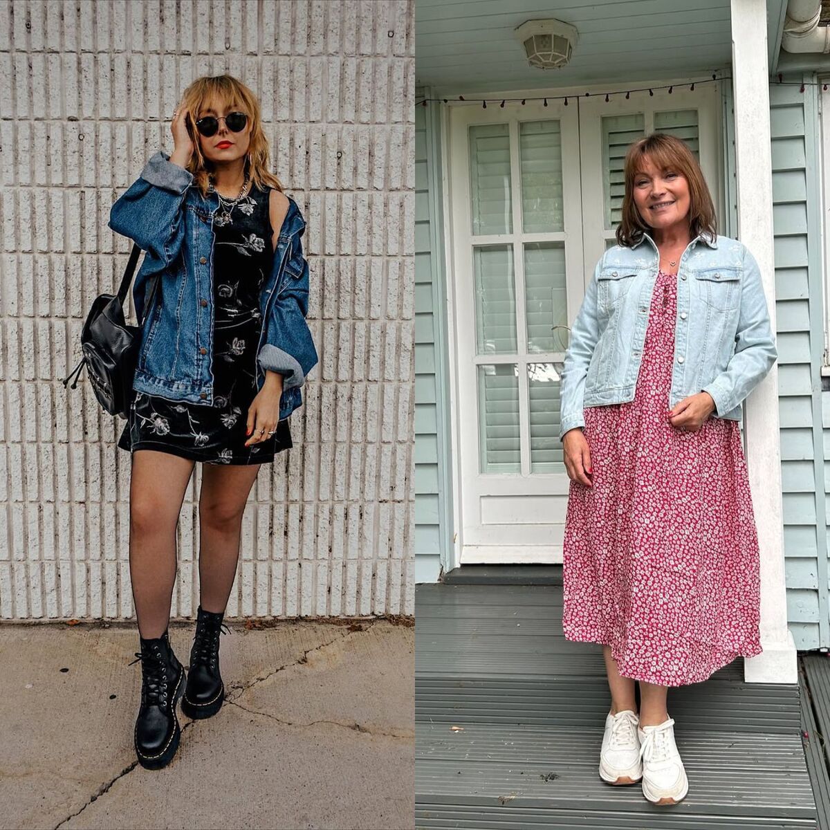 This pairing had a major, yet short, moment in 2016 before leather jackets took over. But it never lost its charm, at least for me. There’s something about the contrast between sturdy denim and a flowy floral dress that just works. For a slightly grunge-leaning look, opt for shorter black dresses. If you’re looking for something softer and more romantic, go for airy maxi styles.