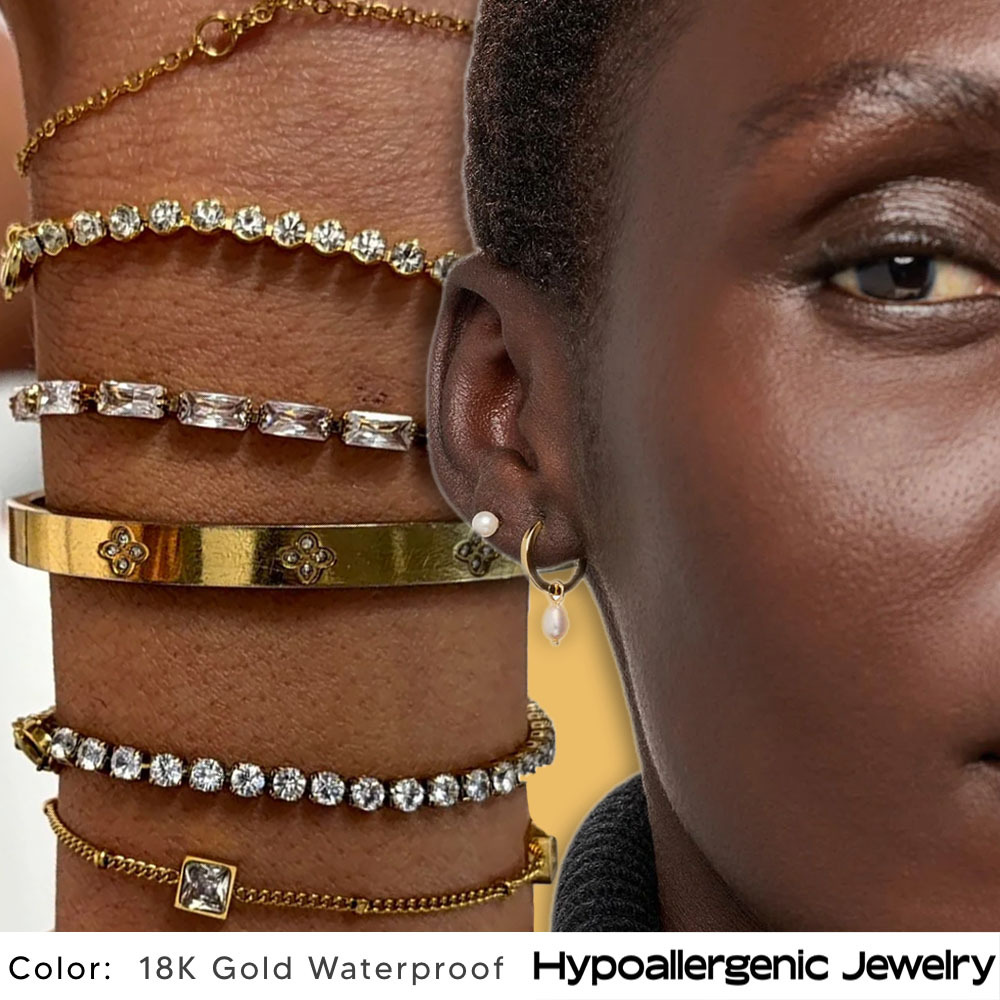 Both brands address the concern of sensitive skin. EvryJewels specifically advertises nickel-free and cadmium-free jewelry designed for those who react to certain metals. Their pieces use stainless steel as a base with 18k gold plating, and they include waterproof construction to protect against moisture damage.