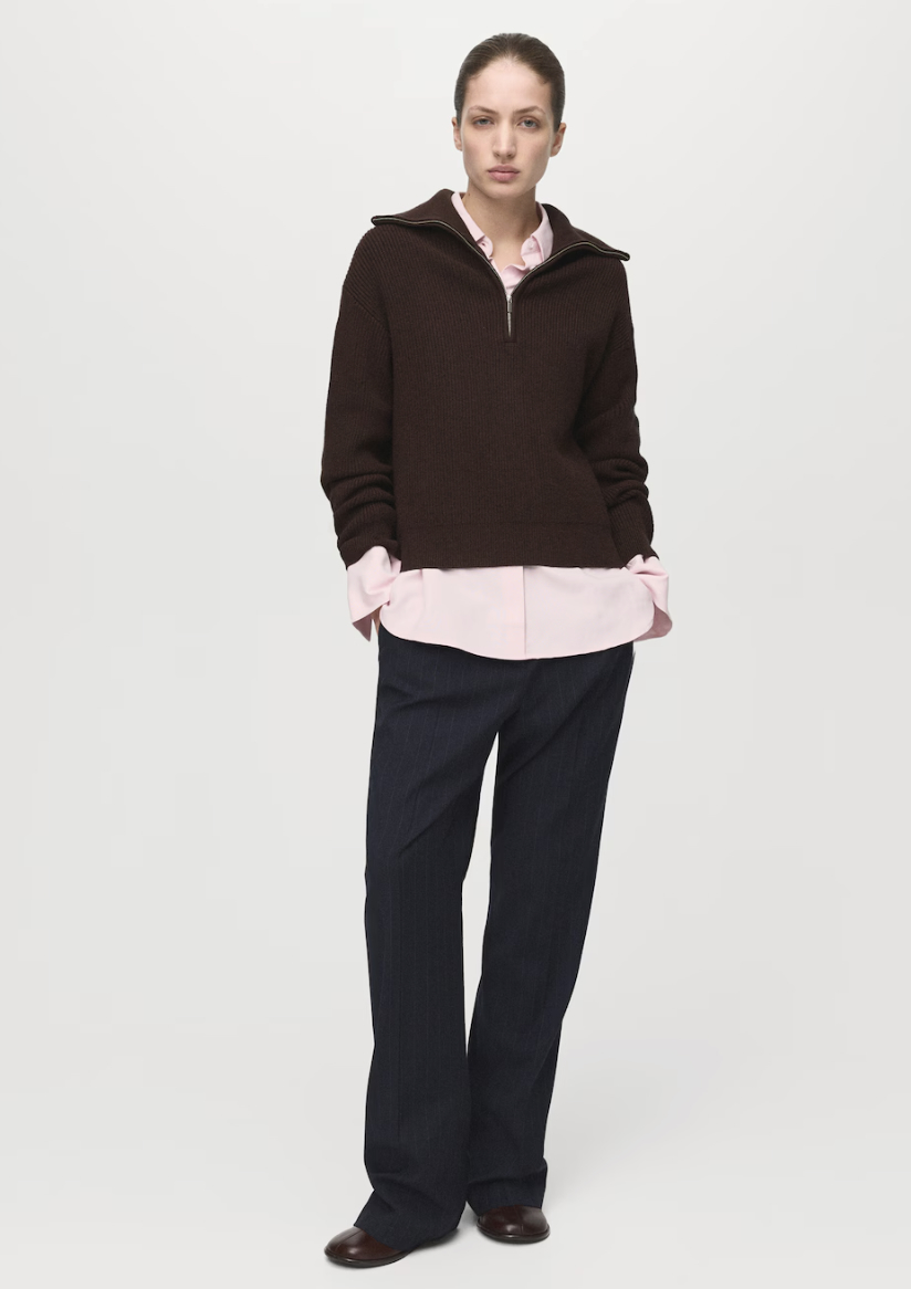 Sweater with Contrasting Zipper Collar