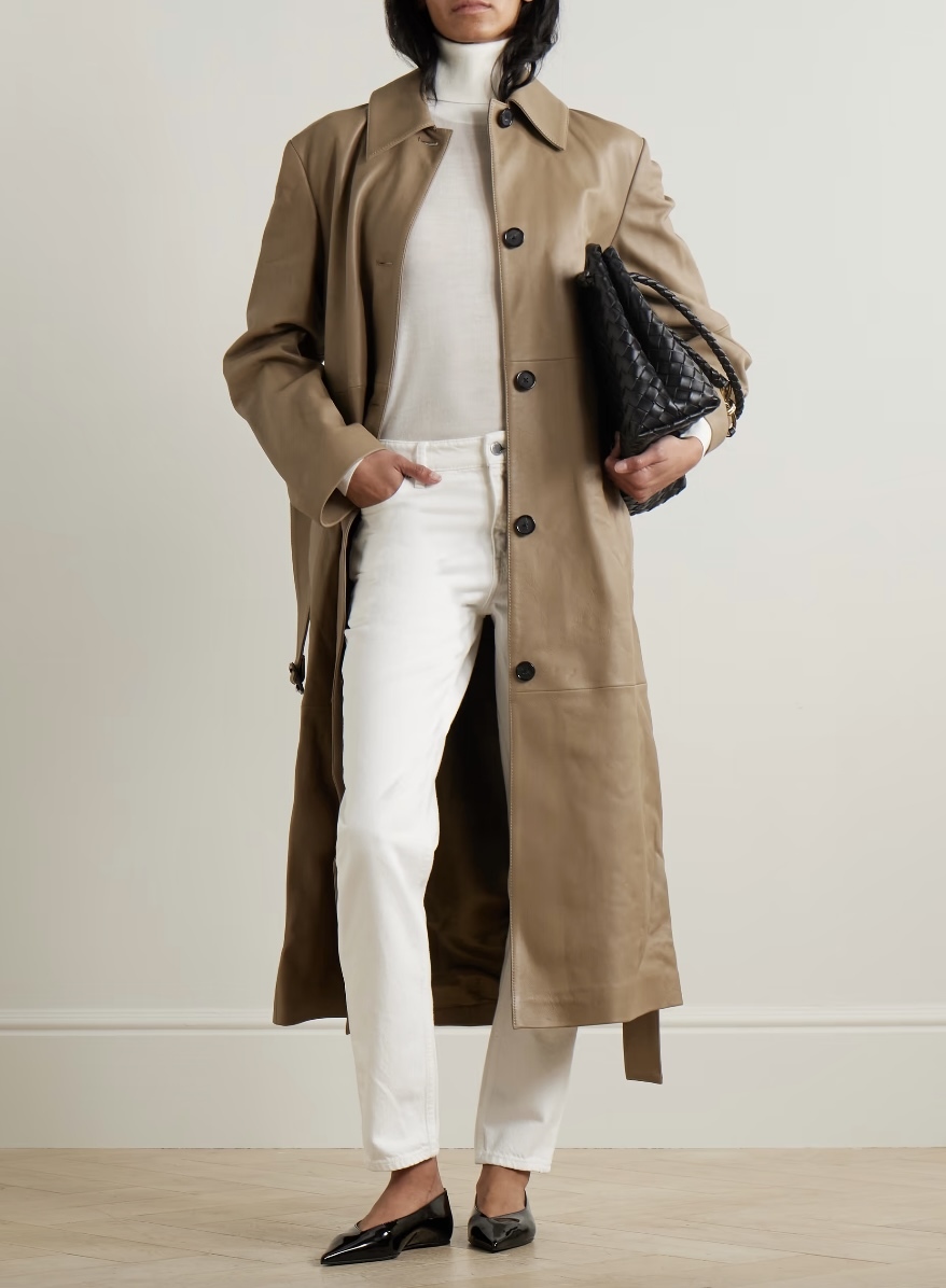 Belted Leather Trench Coat
