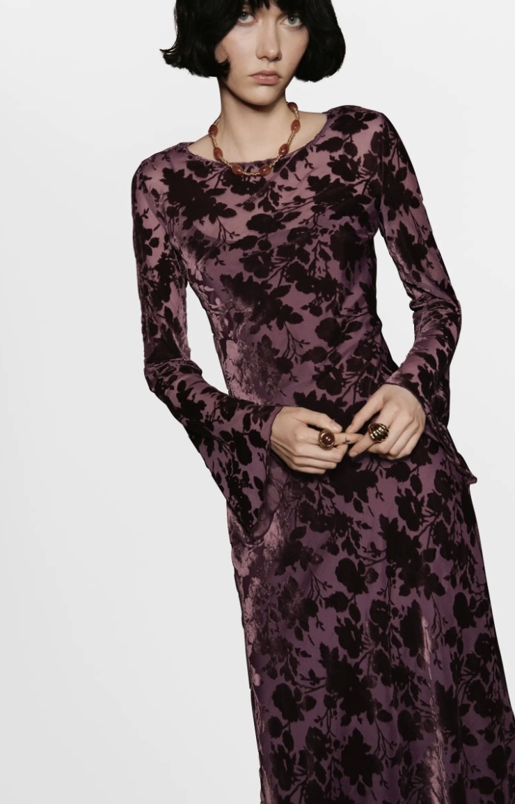 Floral Burnout Velvet Long Sleeve Maxi Dress