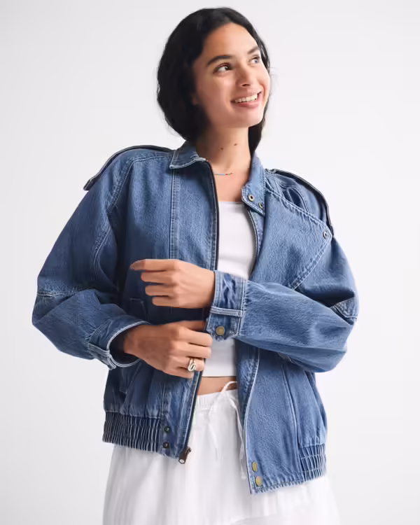 Relaxed Denim Bomber Jacket