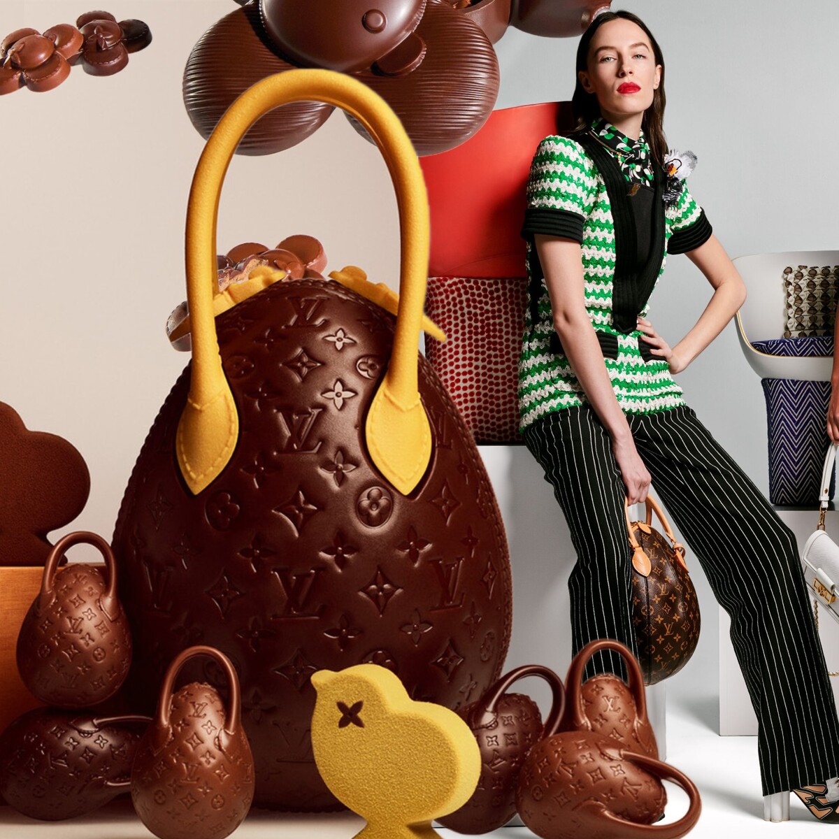 Louis Vuitton just dropped a limited-edition chocolate collection, and the centerpiece is literally a handbag you can eat. Not inspired by. Not referencing. A direct chocolate version of the brand’s iconic Egg Bag, finished in deep red with the LV monogram stamped across it like it belongs on a runway, not a dessert plate.
