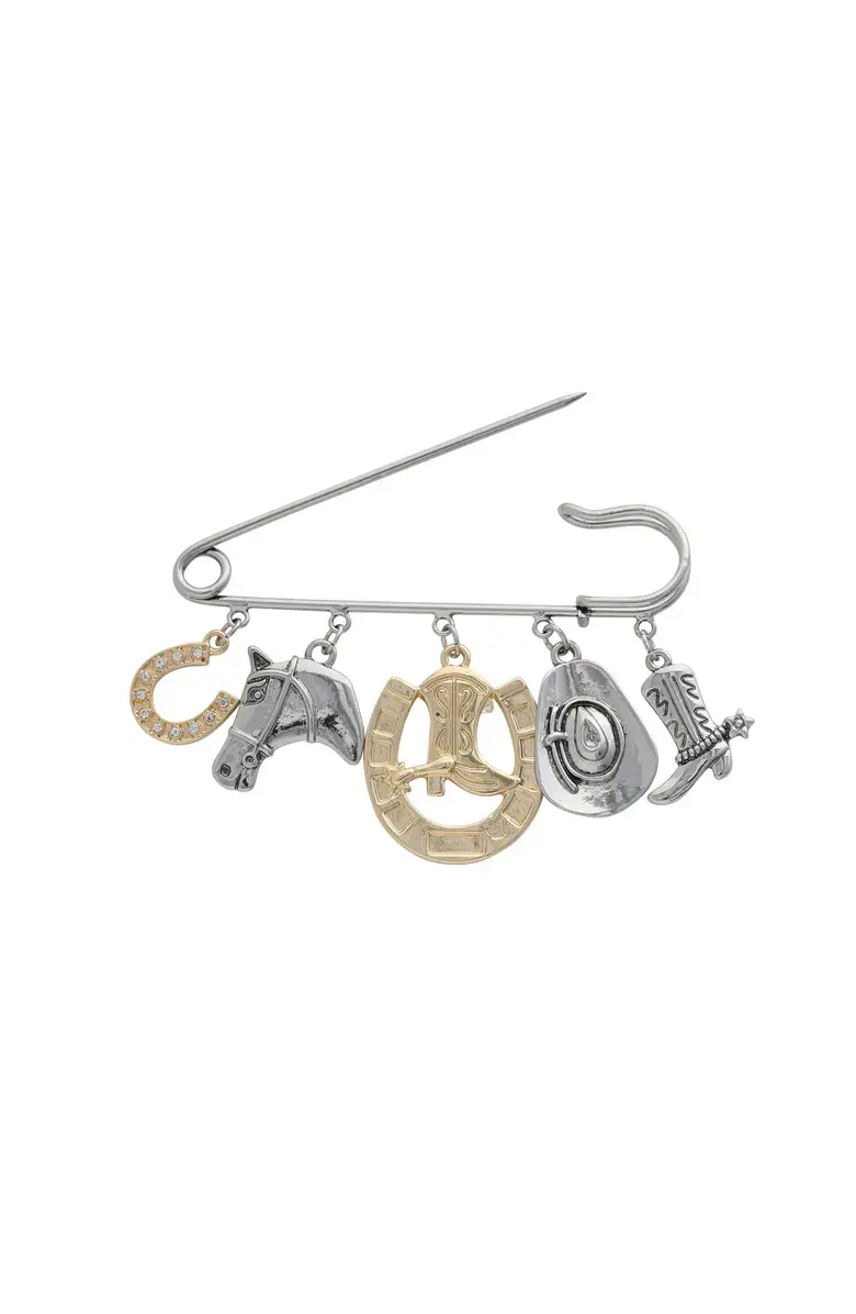 Mixed Metal Rodeo Charm Saftey Pin Brooch
