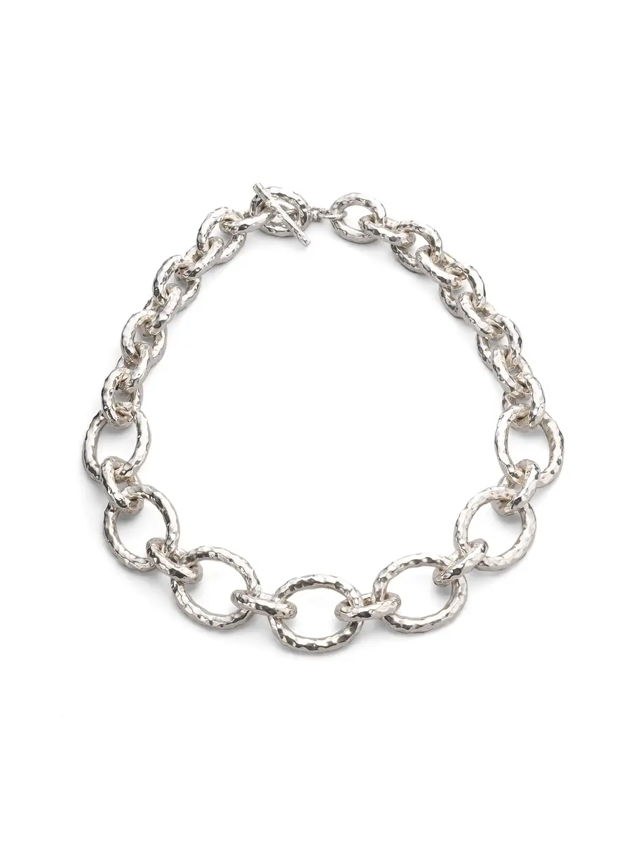 Classico Short Sterling Silver Hammered Bastille Chunky Link Necklace