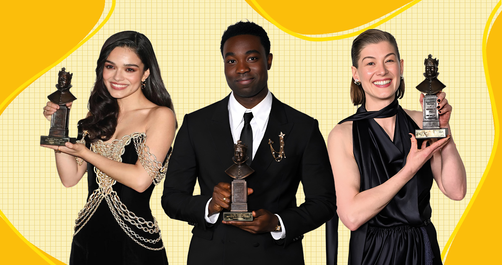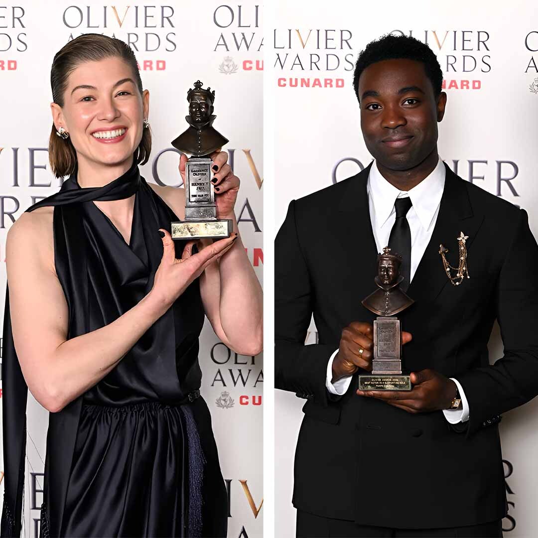 Rosamund Pike took an “exhilarating risk” in returning to theater after an absence of over a decade. Of course, it paid off. She won Best Actress award for her performance in 'Inter Alia', up against high competition from Cate Blanchett and Marianne Jean-Baptiste. The West End play explored themes of masculinity and grappling motherhood; in her tearful acceptance speech, she acknowledged the irony as she thanked her partner Robie Uniacke for caring for her children while she was working on this project.