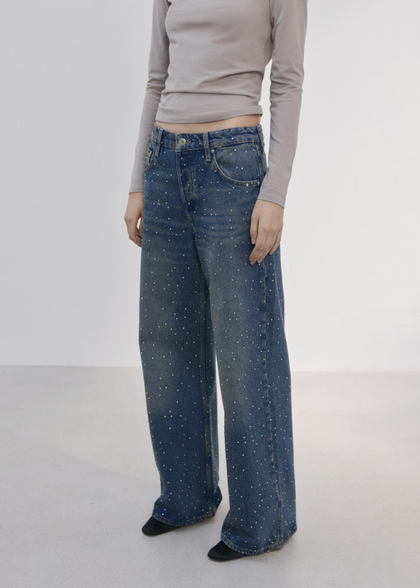 Wide leg jeans with rhinestones