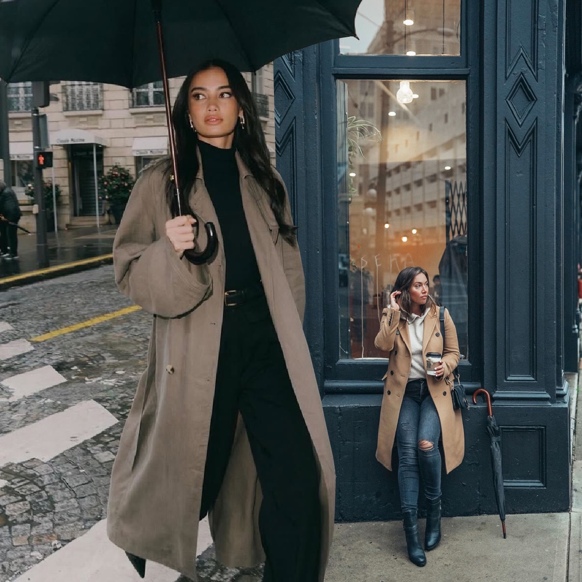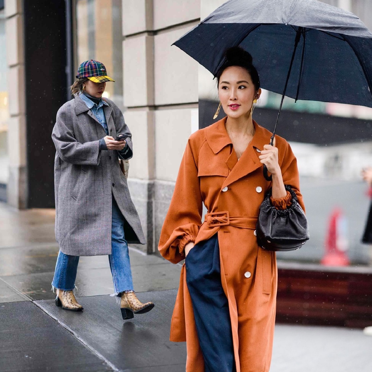 The formula for dressing for wet weather is choosing the proper layers and accessories that can handle the forecast without feeling bulky. My go-to is a lightweight trench coat or an oversized rain jacket because it instantly makes any outfit look more put-together. I love a neutral shade like beige, black, or olive since they match everything, but a brighter color can make the gloomy weather feel more fun.