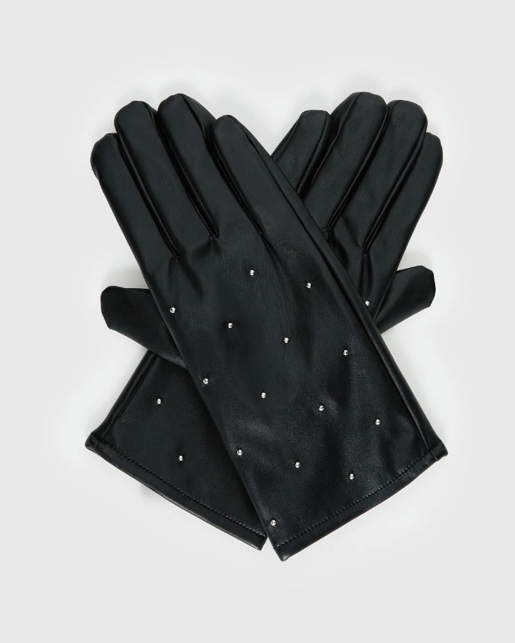 Zaylah Faux Leather Stud Detail Gloves Black