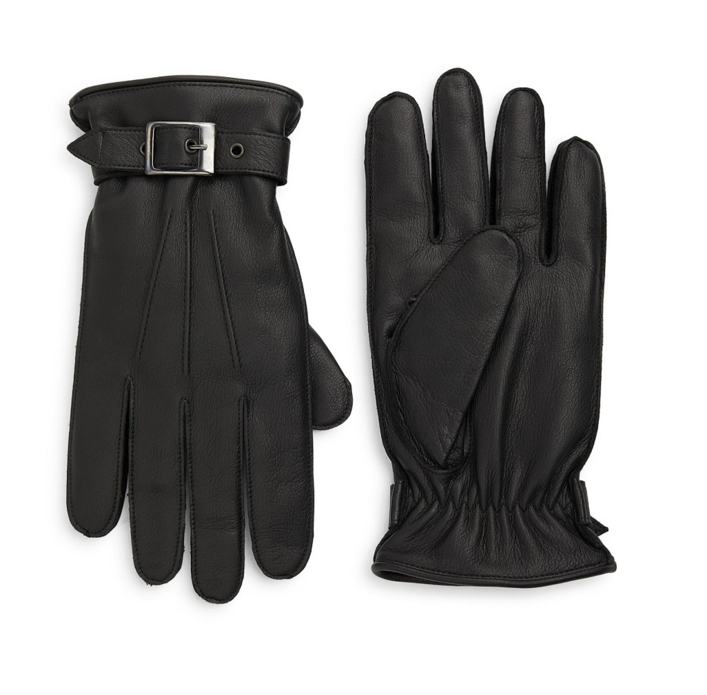 Cashmere-Lined Leather Buckle Gloves