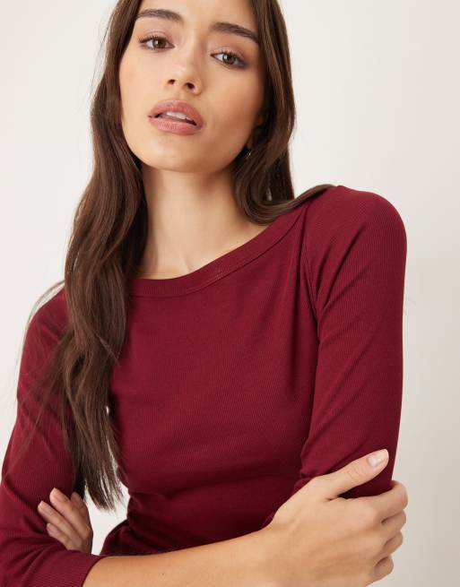 JJXX Fifi boat neck long sleeve t-shirt in burgundy