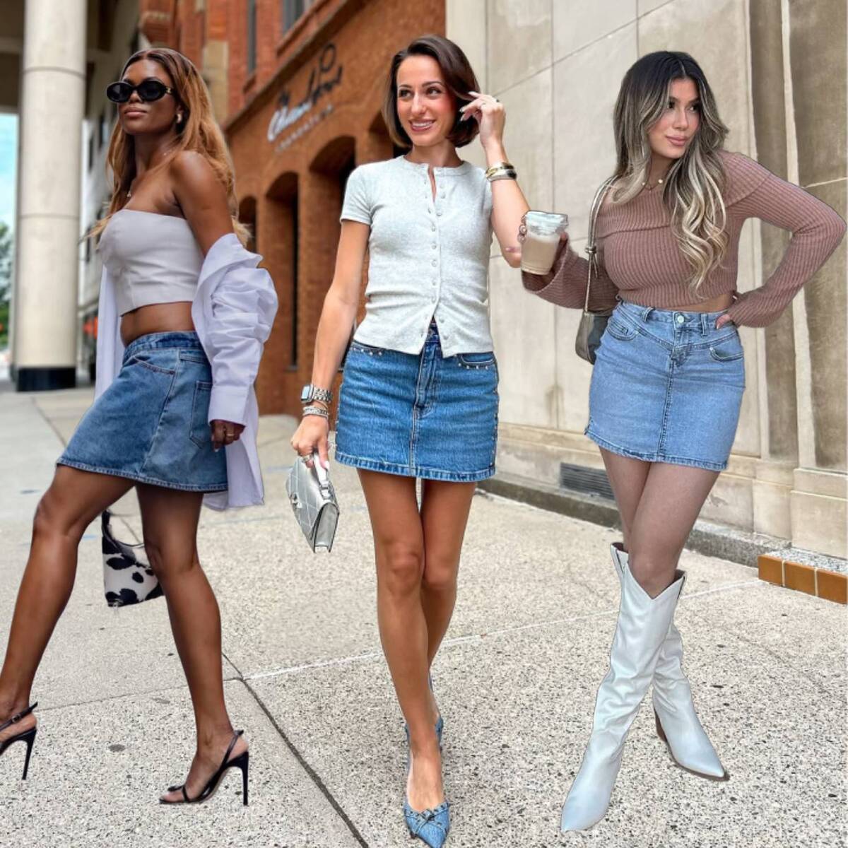 The return of this silhouette proves once again that fashion is indeed cyclical, as denim minis practically scream early 2000s. Over the past few years, they quietly stepped out of the spotlight, but now they’re ready for a legendary comeback, and I’m fully here for it! The best thing about denim is its versatility: it works with pretty much any color, pattern, or fabric. I personally love pairing it with a basic white top, brown belt and tights, and knee-high boots.